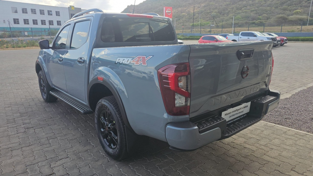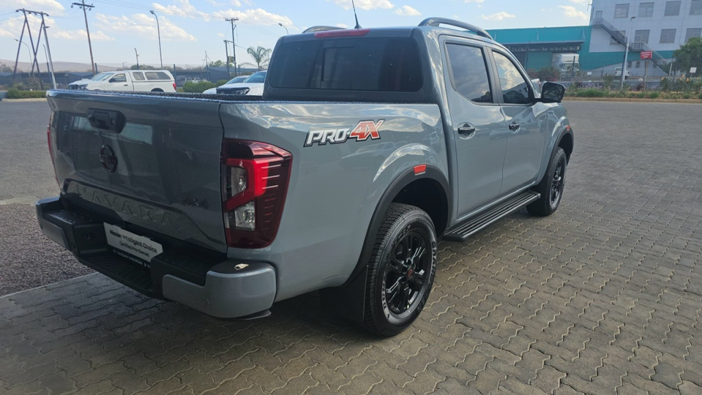 The 2025 Nissan Navara 2.5DDTi PRO-4X 4x4 A T D C P U is a capable off-road double-cab bakkie featuring a 2.5L Turbo Diesel engine (140kW 450Nm), a 7-speed auto, robust 4x4 system with low range, aggressive styling (black accents, roof rails, alloys), advanced tech (LEDs, Surround View Camera,